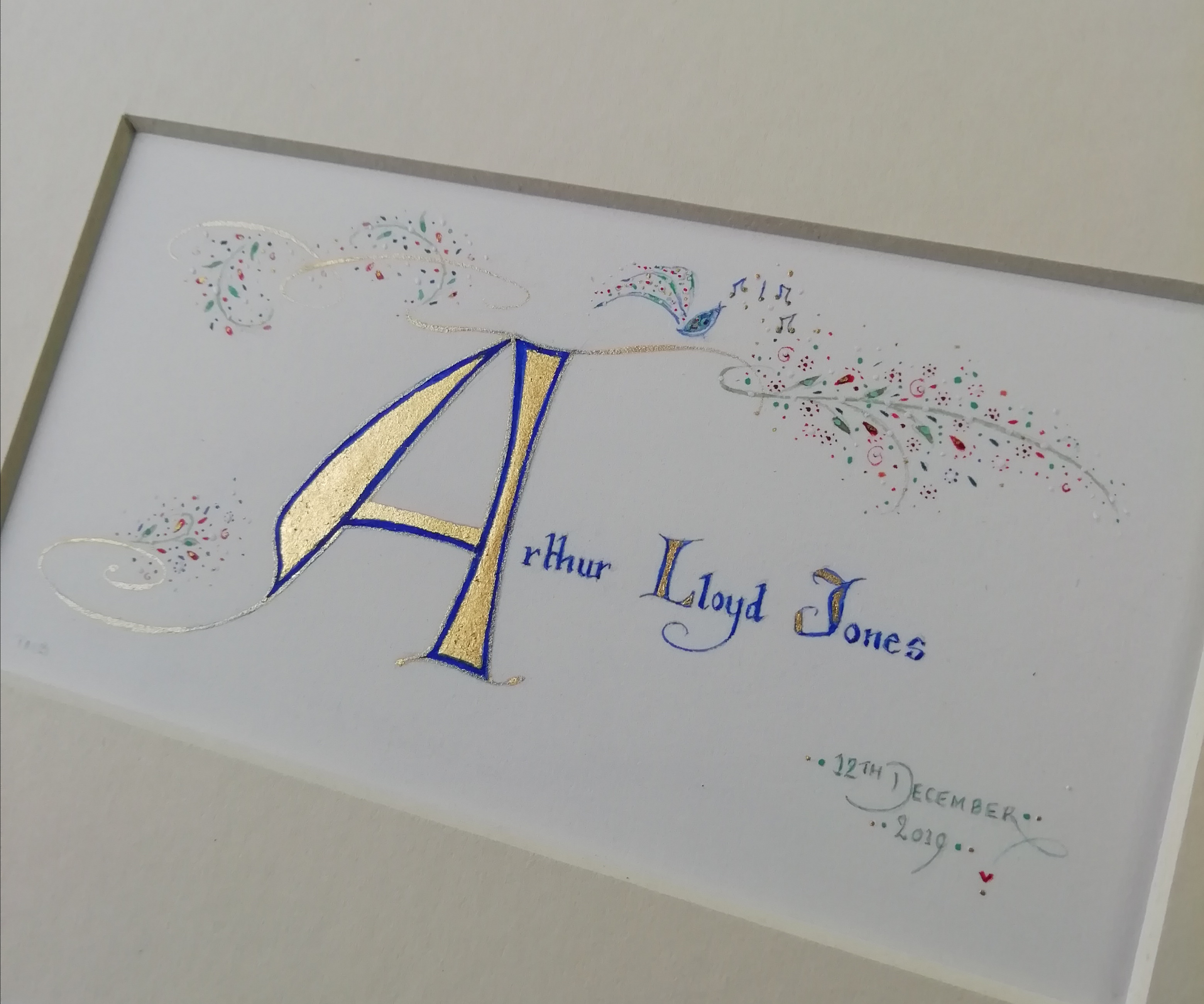 I’ve just finished this lettering commission for Arthur, born 12th December last year. I feel quite pleased with it – using different paper which seems nicer to work with. The client requested more detail and so my aim was to add the delicate detail but keep it masculine. Previous work that I’d done for their wedding was quite feminine.