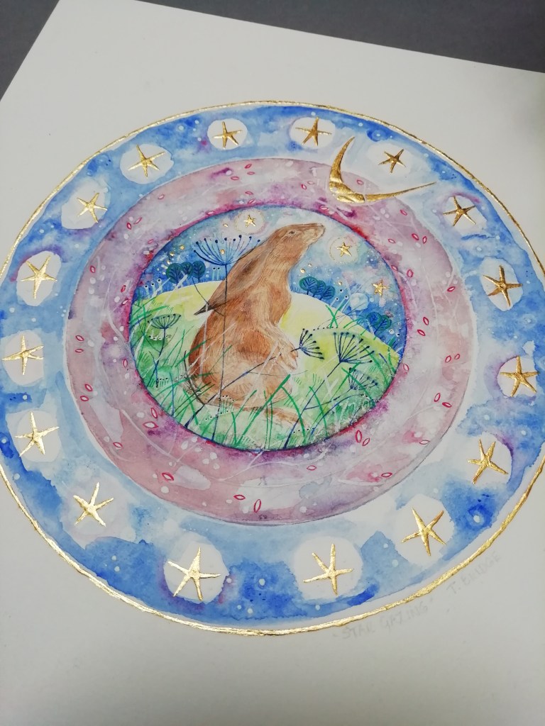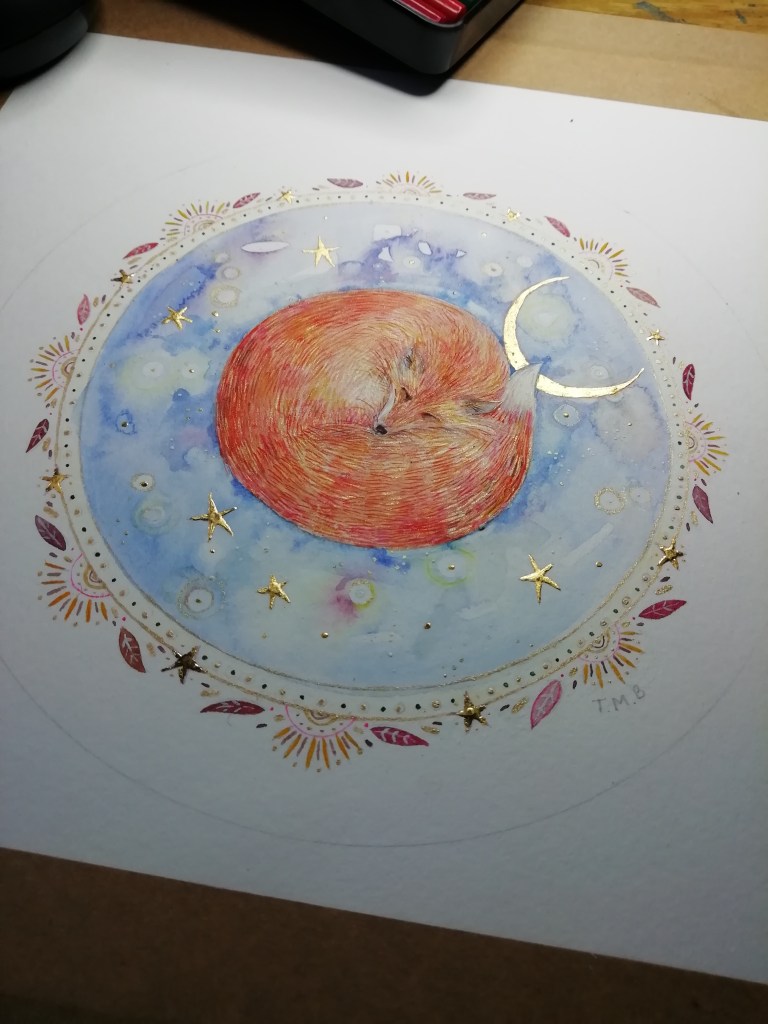 Watercolour and 24 carat gold leaf. Available unframed. Update SOLD